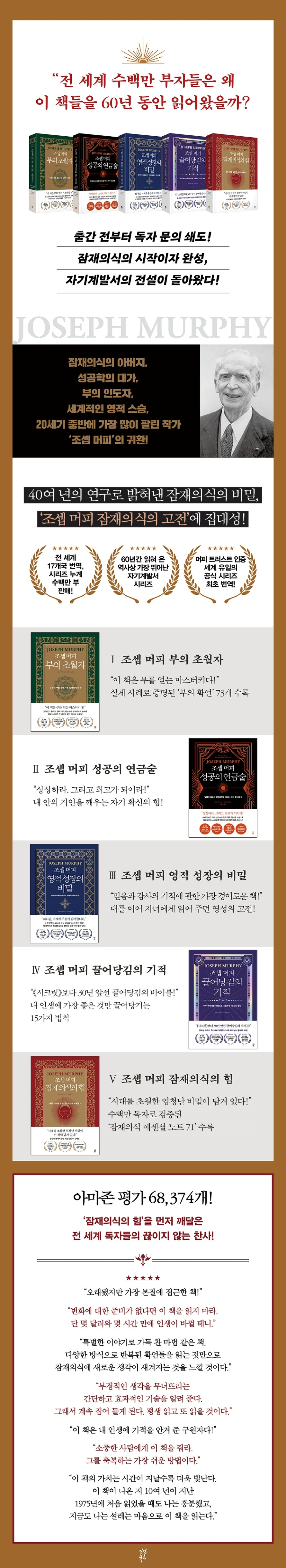 조셉 머피가 잠재의식에 대한 탐구는 자아계발에 대한 매력적이고 실용적인 접근 방법입니다. 그의 통찰력은 우리의 생각과 신념이 우리의 삶에 미치는 놀라운 영향을 강조합니다. 잠재의식의 힘을 이해하고 확언과 긍정적인 사고를 통해 그것을 활용하면 우리의 현실을 놀라운 방식으로 형성할 수 있습니다. 머피의 가르침을 받아들이는 것이 즉각적인 기적으로 이끌 수는 없을지라도 개인적인 성장, 자기 발견 및 더 충실한 삶을 향한 명확한 로드맵을 제공합니다.